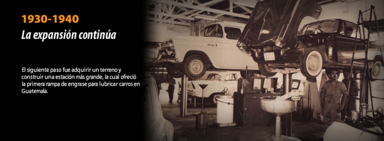 En 1925 el negocio toma una nueva apariencia y con mas espacio podía guardar una mayor existencia de productos de petróleo y ahora agregando también neumáticos de diferentes marcas a su inventario. El siguiente paso fue adquirir terreno y construir una estación más grande, la cual en el año 1930 ofreció la primera rampa de engrase para lubricar carros en Guatemala.