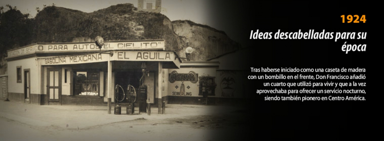 La forma acostumbrada de obtener gasolina era por medio de latas que los mismos dueños de carros importaban. Francisco tenia que ofrecer algo novedoso para atraer clientes a su pequeña estación, siendo entonces el primero en la ciudad de Guatemala en ofrecer el servicio gratis de aire y agua, del cual nunca se había oído antes y a la vez convencía a los clientes a no dificultarse con la importación y almacenamiento de la gasolina.