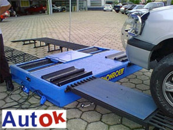 Equipo electrónico para diagnóstico de suspensión, frenos, alineación y AutoOk único en Guatemala capaz de generar diagnósticos de suspensión, en donde nos grafica el estado de la suspensión por medio de frecuencia megahertz según las oscilaciones de los amortiguadores y los componentes que con ella conlleva.
